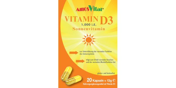 Inhalt 20 Kapseln AMOSVITAL Vitamin D3 1.000 i.E. Sonnenvitamin