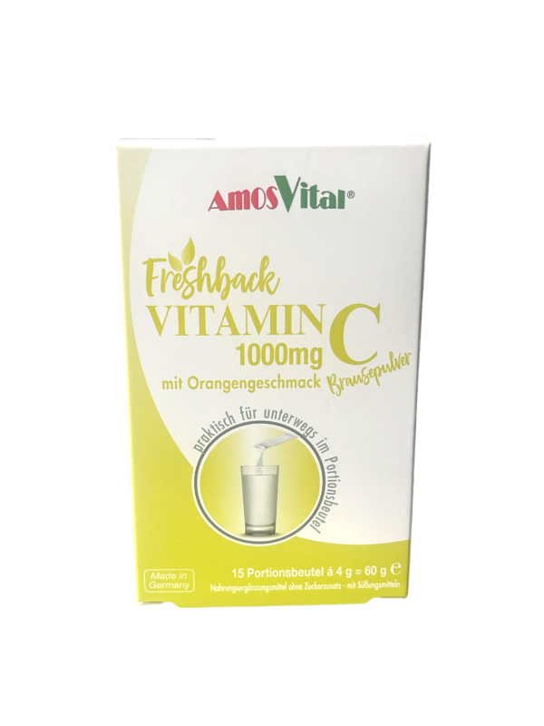 1x täglich einen Portionsbeutel freshback Vitamin C 1000 mg in 200 ml Wasser aufgelöst genießen.